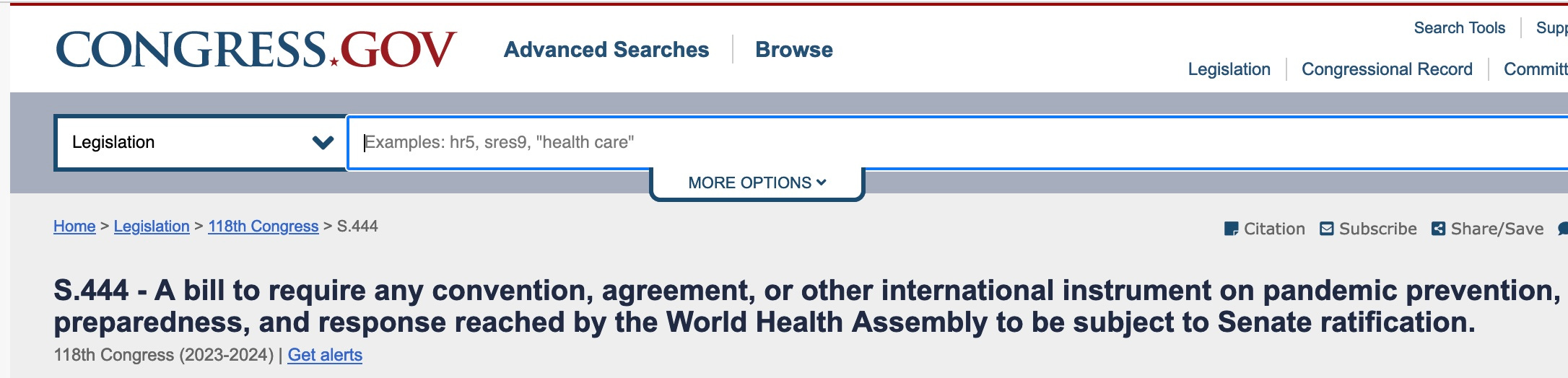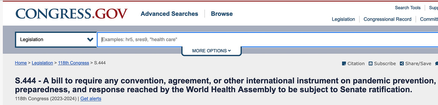 Ron Johnson's Bill S444 to require the Senate to Ratify (with 2/3 vote) WHO treaty has now achieved 49 cosponsors