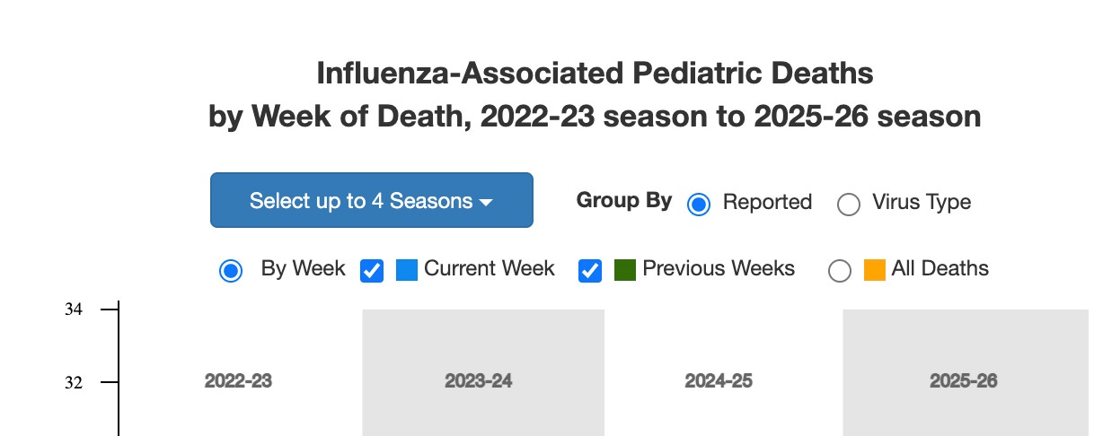 Pediatric deaths associated with flu are rising but remain less than they were at this point during the past three years.