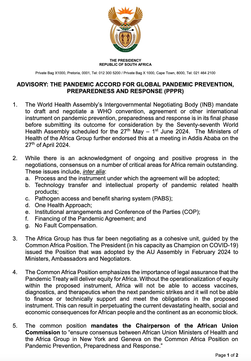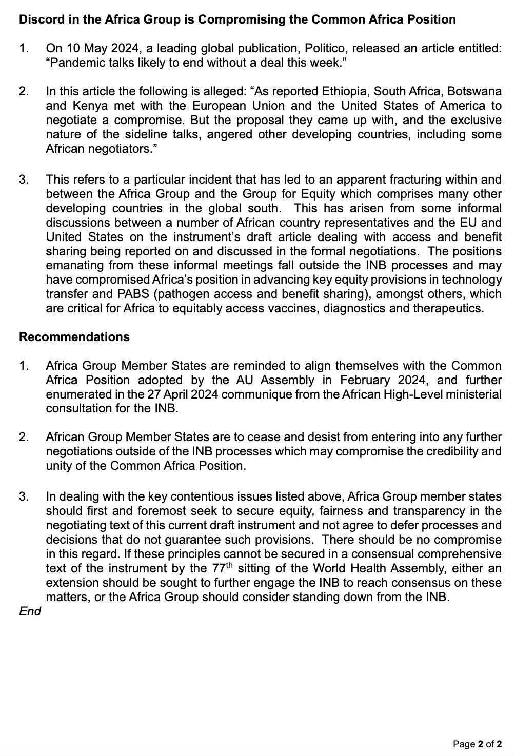 Good news. It looks hopeful that the 54-nation Africa block will not let itself be splintered, and will stand firm on getting the minimal demands for real equity, no blank check, etc. This is very good news.