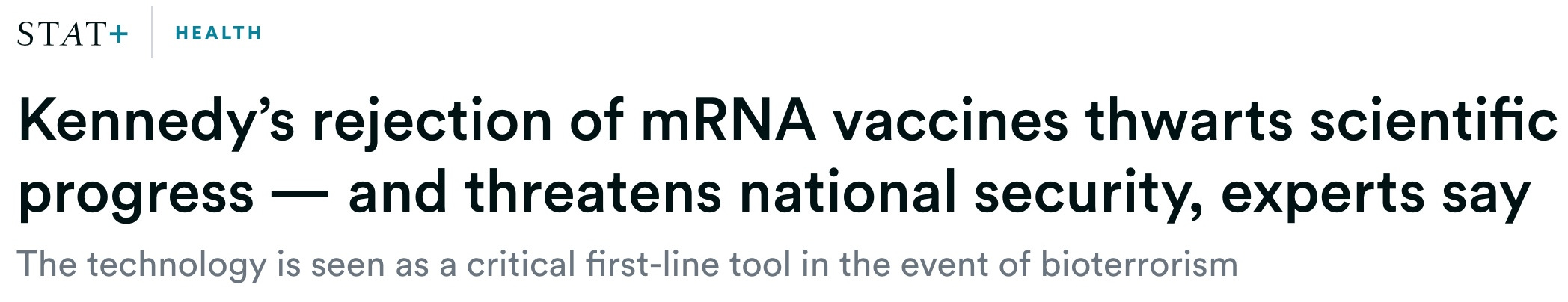 RFK did not take away all mRNA vaccines. He just turned off the BARDA slush fund spigot for those being developed as "countermeasures"--i.e., for rapid use without adequate safety trials