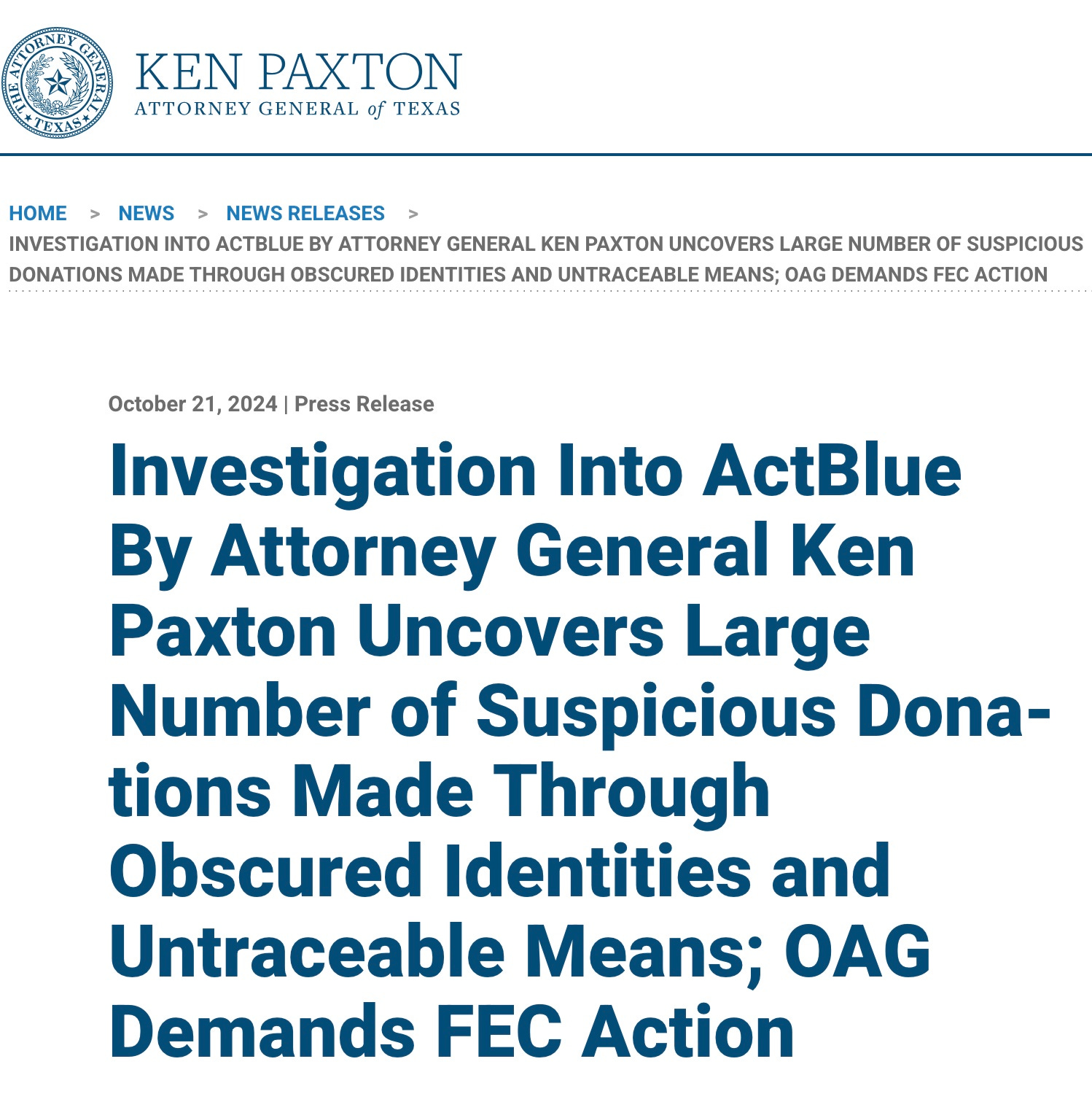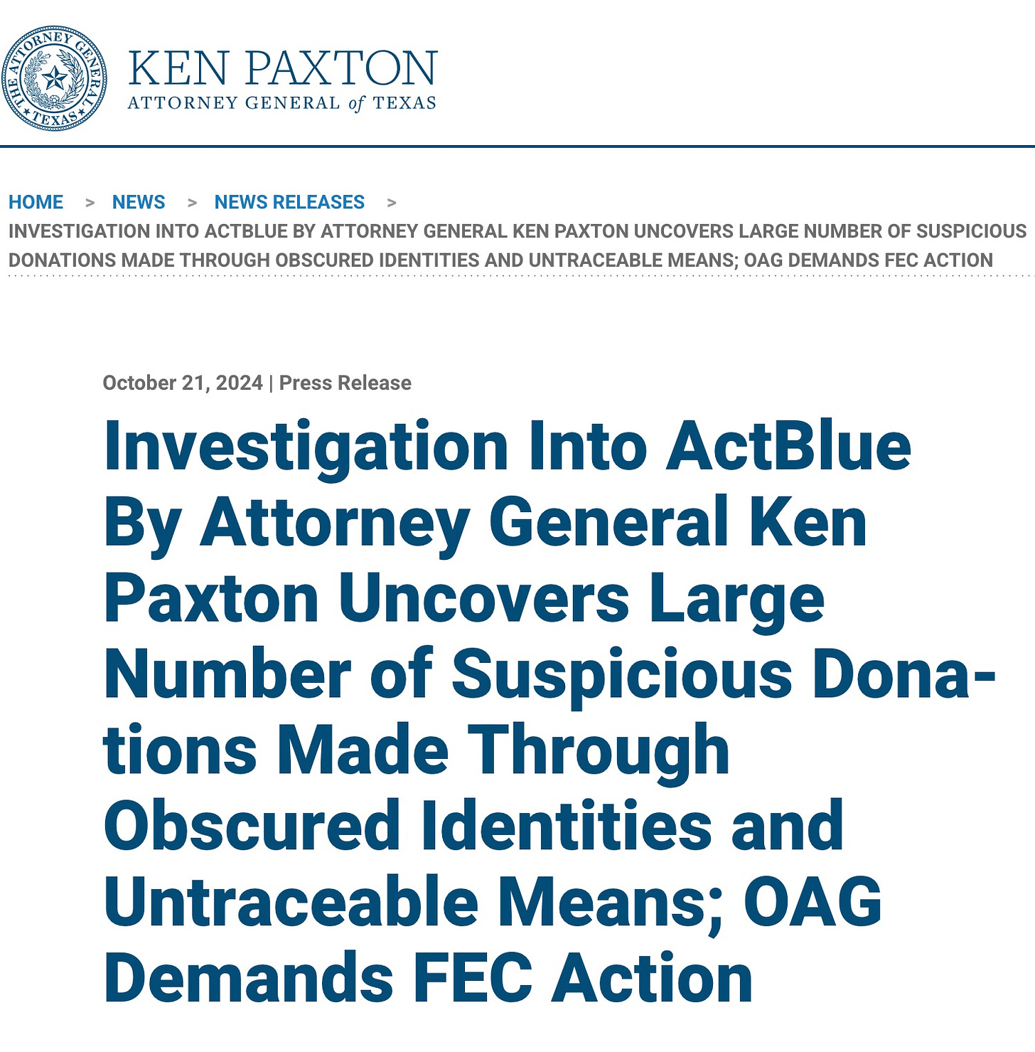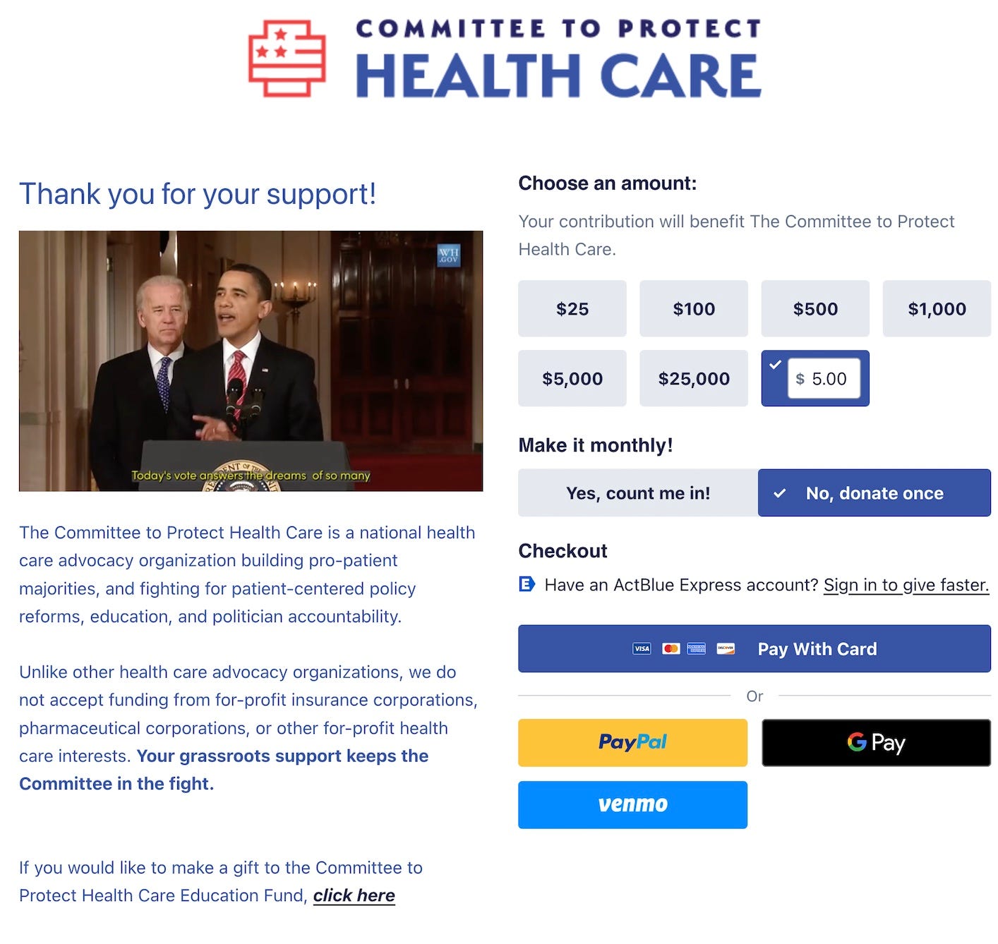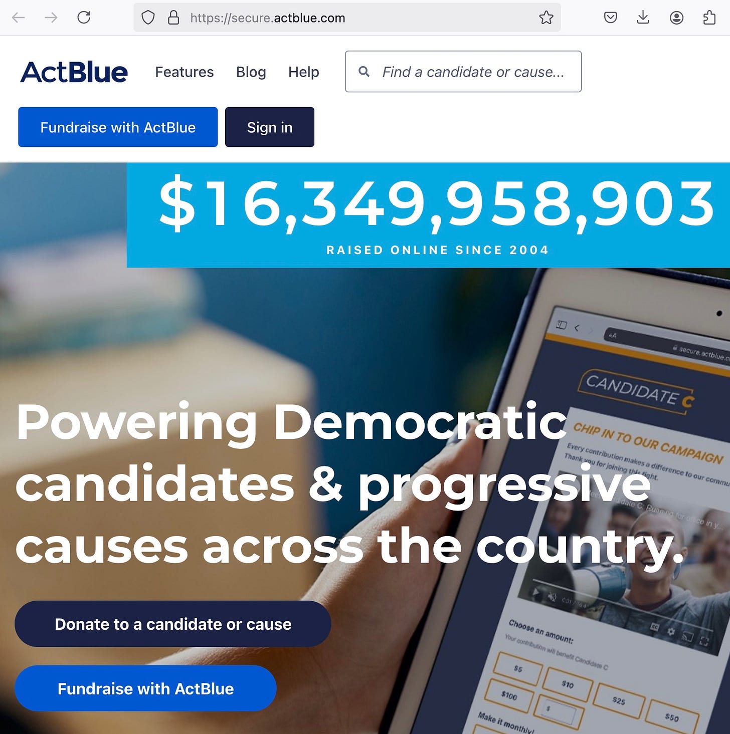 And this is the home page of Act Blue: