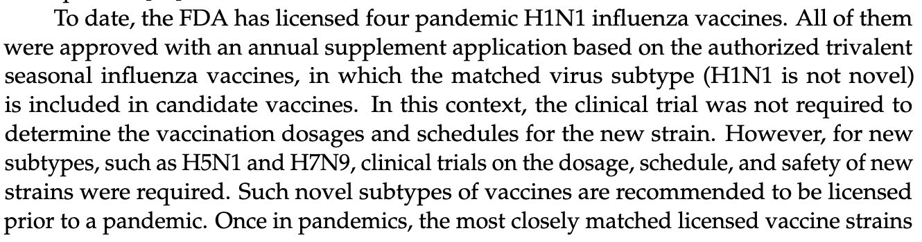 FDA currently ignores this shibboleth in its regulation of prepandemic/pandemic vaccines.