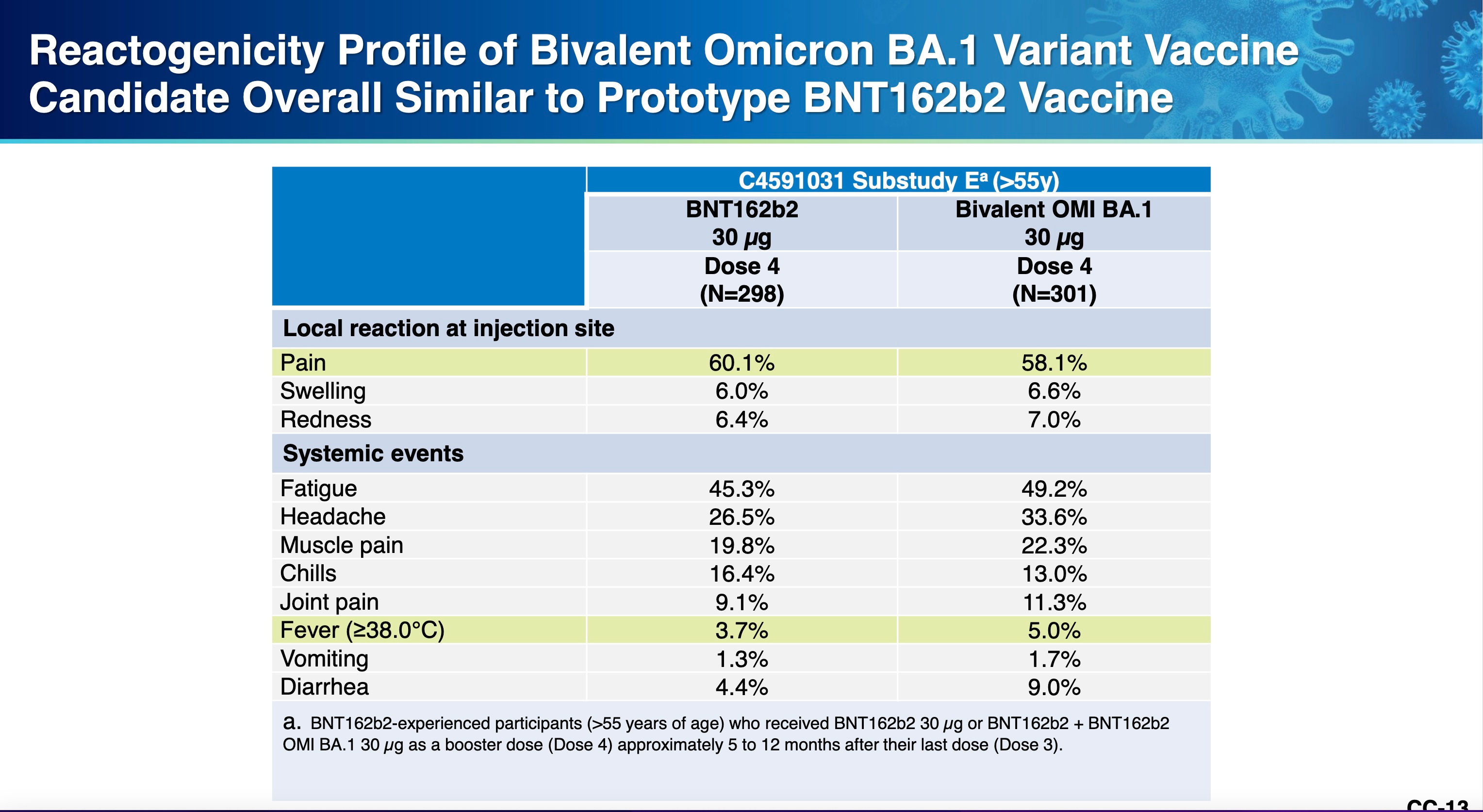 However, if you look at Pfizer's chart prepared for the ACIP members below, you will notice that there was greater reactogenicity (more acute side effects) seen after the omicron prototype vaccines than seen after the older vaccines. This may be a signal that more severe reactions will result from the newer vaccines, but there is no way to be sure.