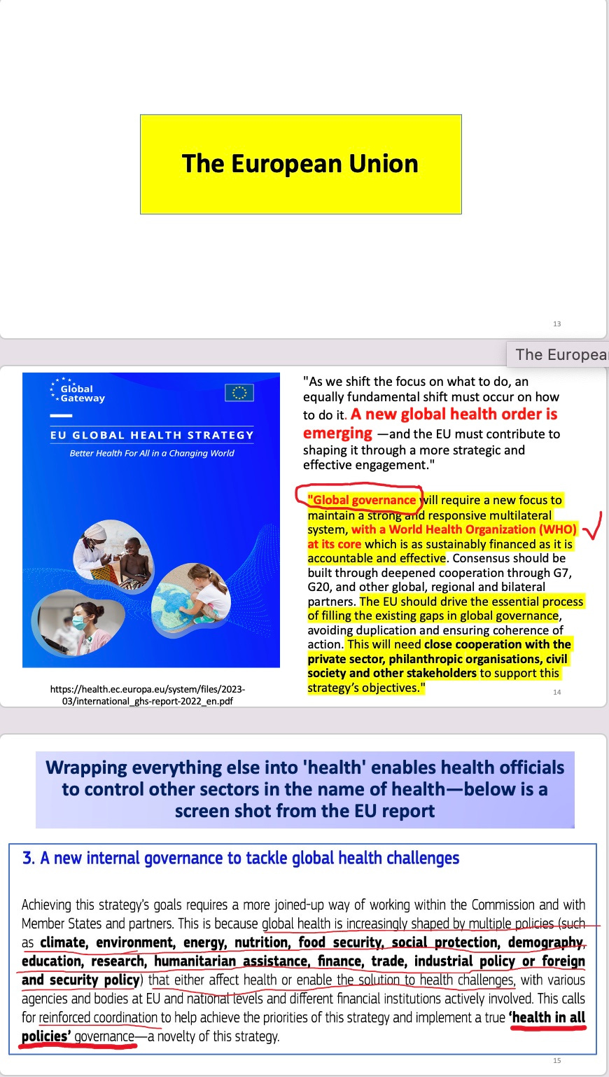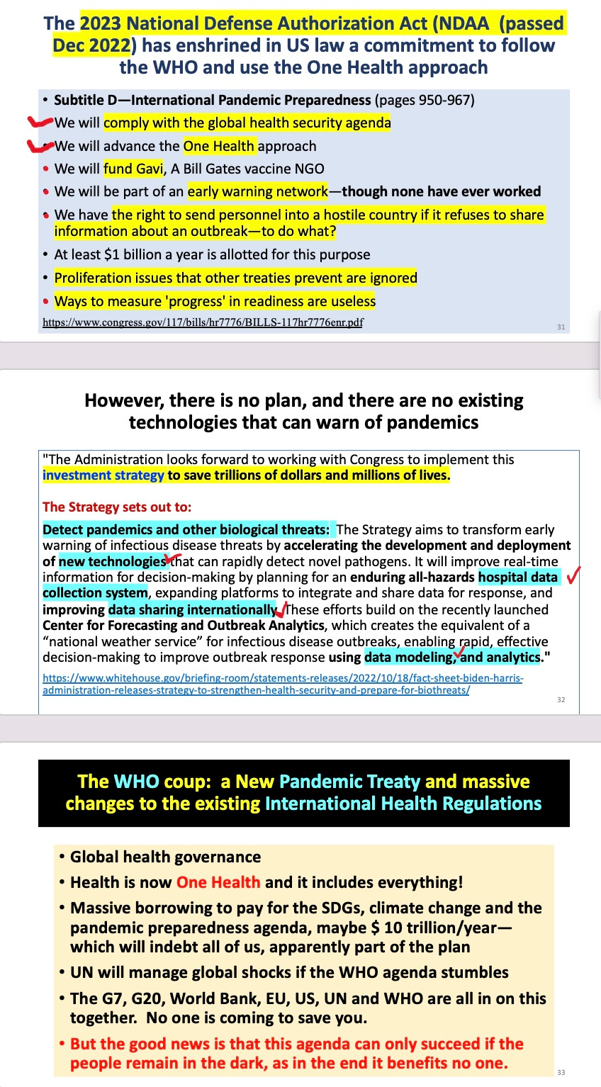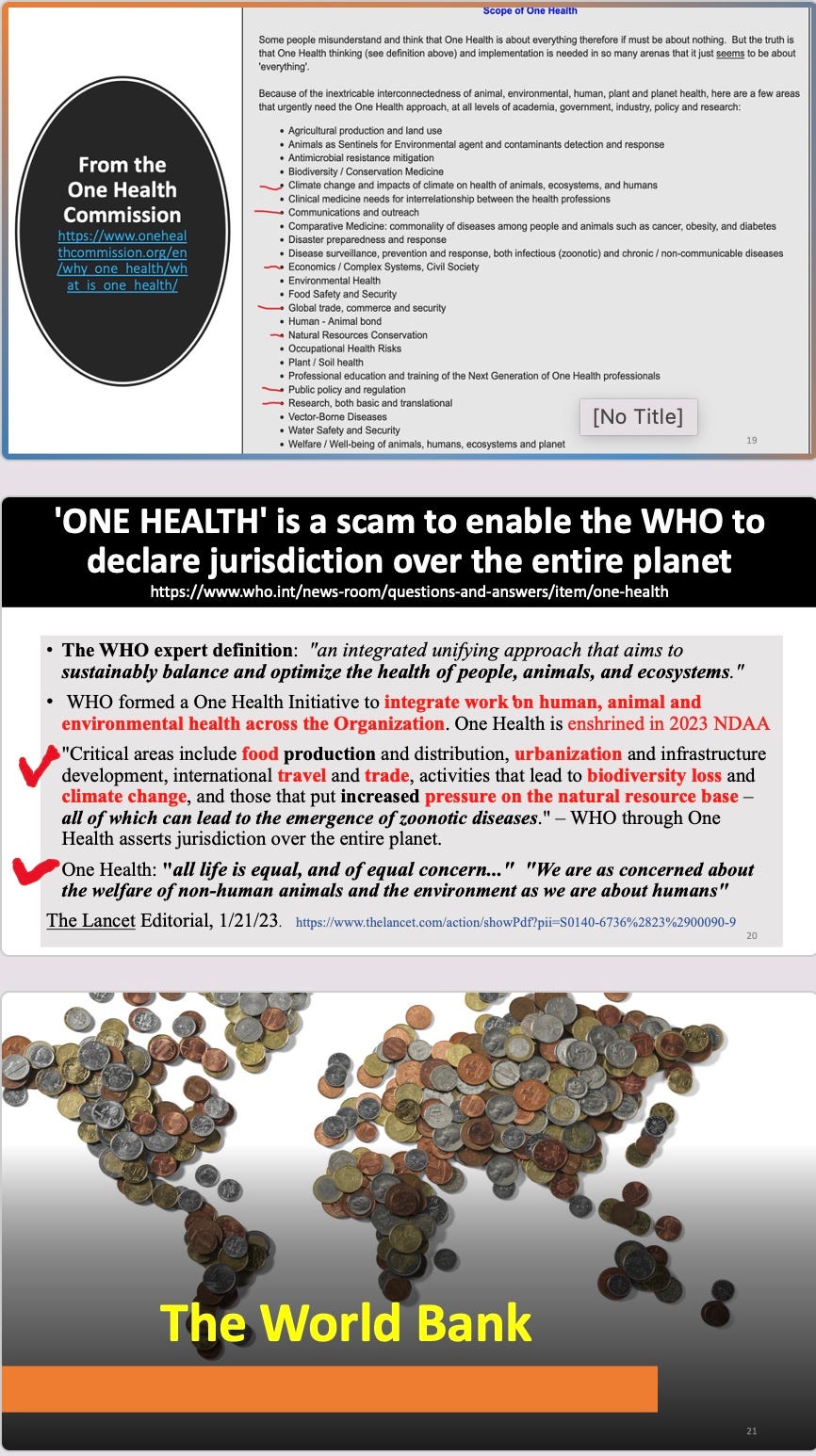You can watch the whole event, or just me or certain talks. All my slides are posted below: my 20 minute version on the WHO-globalist coup (involving all the major multinational organizations)