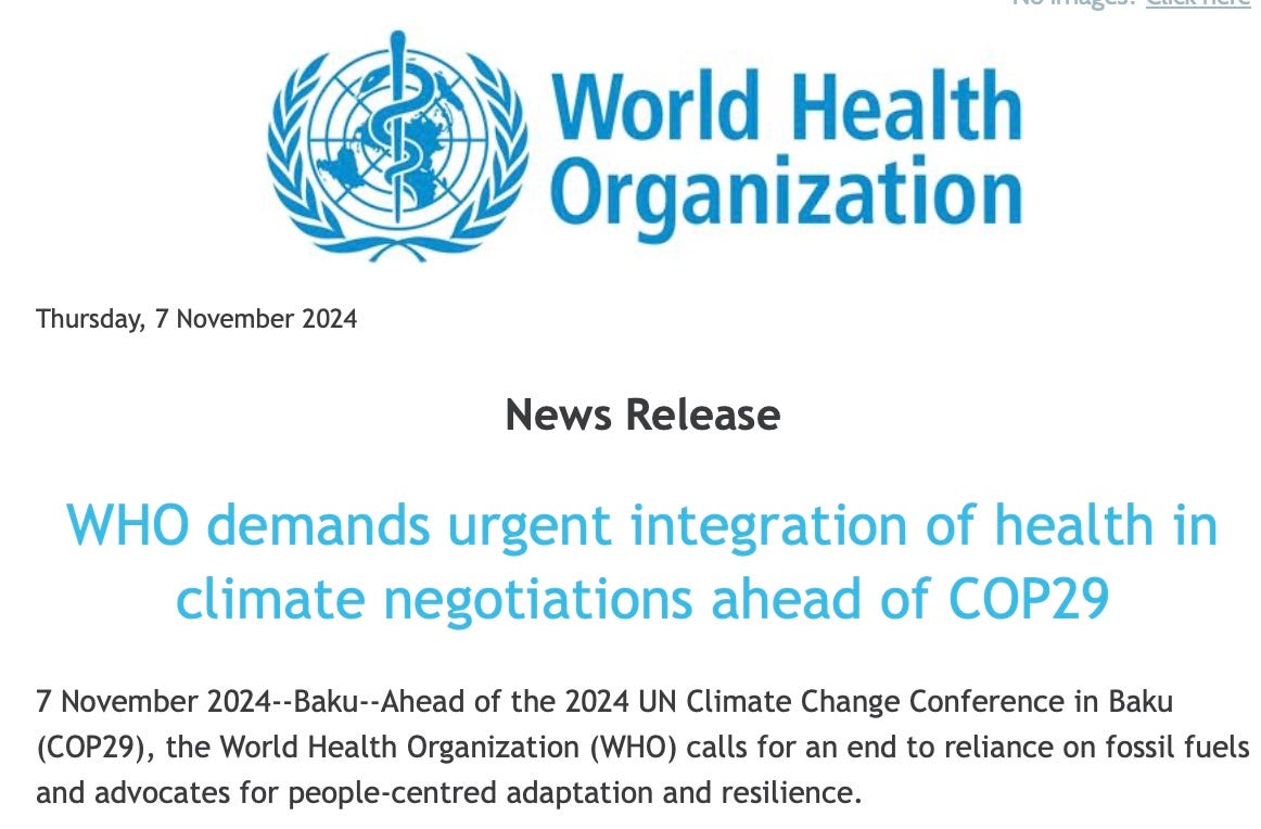 The magical fusion of HEALTH with Climate Change: "WHO demands urgent integration of health in climate negotiations" -- to generate at least $1 Trillion/yr for the Green Transition