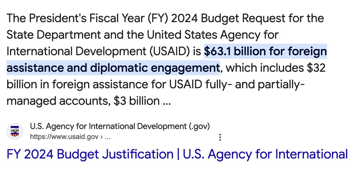 I noticed this in mid 2020 and realized that something smelled fishy about it. (This was before anyone knew Peter Daszak was the EcoHealth Alliance launderer of money to the WIV and at least 30 other international labs, from at least 5 US government agencies.) USAID was Peter’s biggest funder, immediately followed by DOD. Listen to Mike Benz regarding USAID—it is really a deep state slush fund. Watch Samantha Power refuse to answer questions about it when asked by Congress. USAID’s budget of about $32 Billion equals that of the State Department, of which it is an offshoot.
