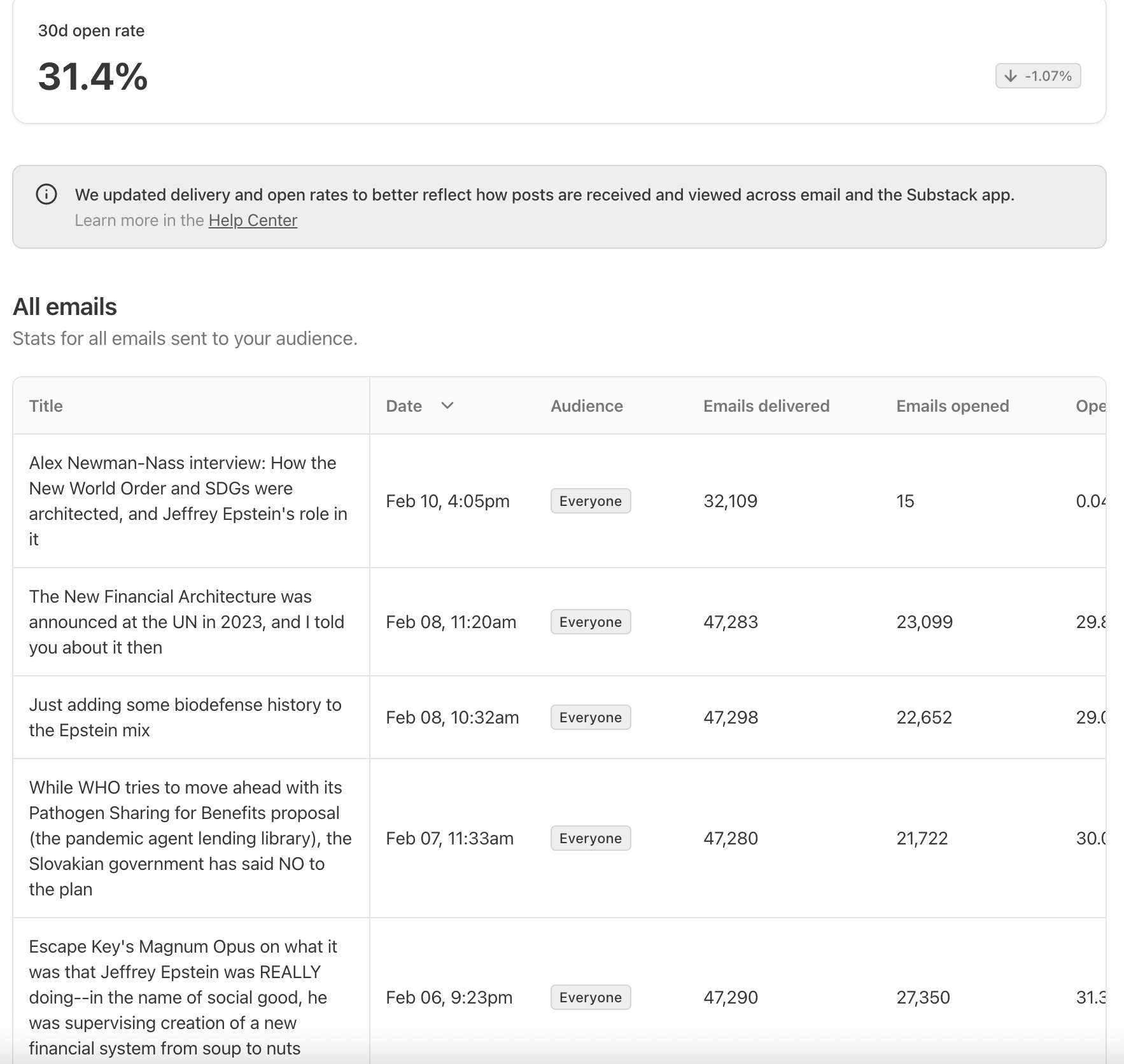 But then substack tells you the actual number of emails opened—and in some cases it is over 50% of emails delivered, a great number. Why the discrepancy?