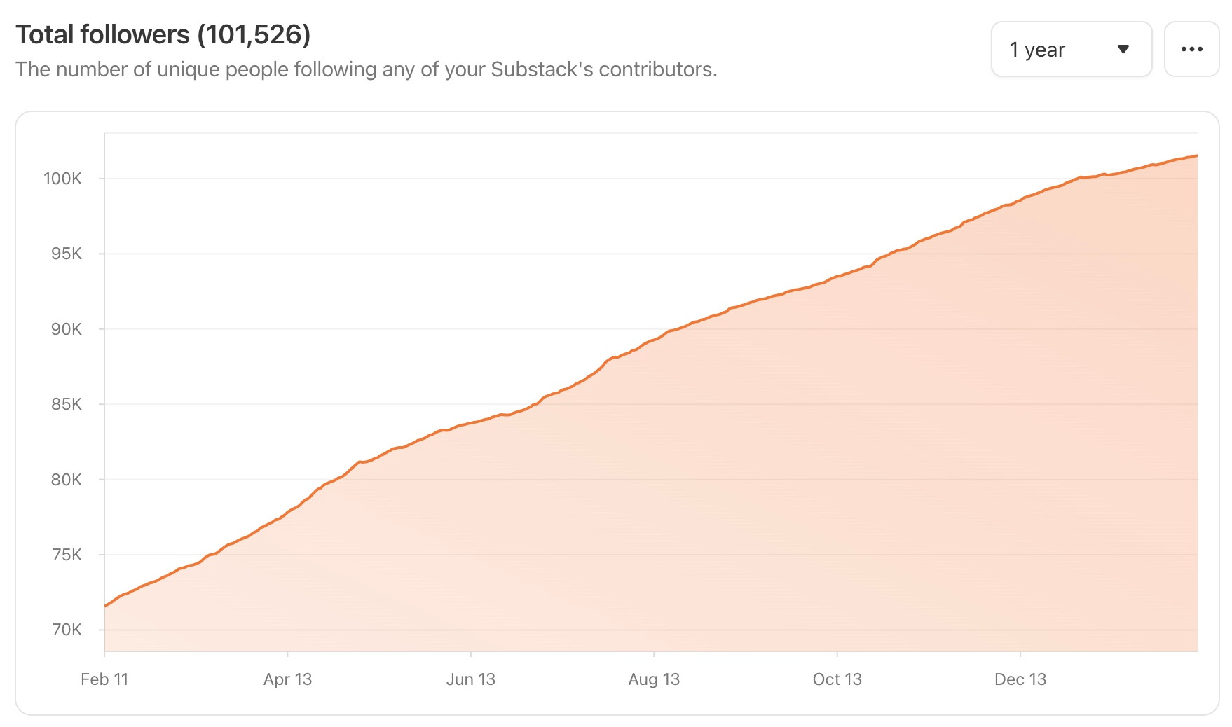 Here is something else that is pretty weird. Substack says that 31.4% of readers open each post on average—which is not bad.
