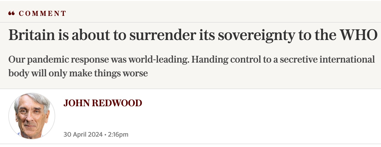 The Telegraph published a commentary today telling its august readership to NOT sign the Pandemic Treaty
