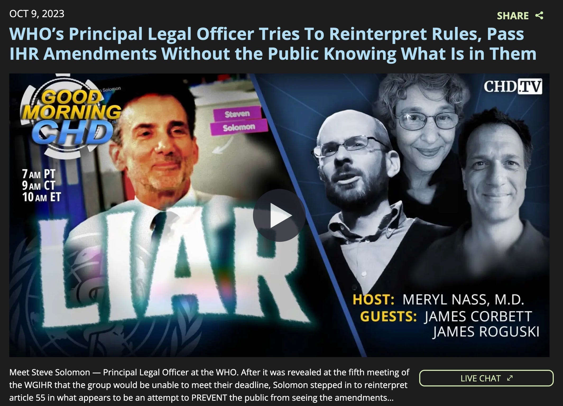And here is the show where James Corbett, James Roguski and I discuss what is happening before our eyes, and tell you who really runs the WHO—its private donors. https://live.childrenshealthdefense.org/chd-tv/shows/good-morning-chd/whos-principal-legal-officer-tries-to-reinterpret-rules-pass-ihr-amendments-without-the-public-knowing-what-is-in-them/