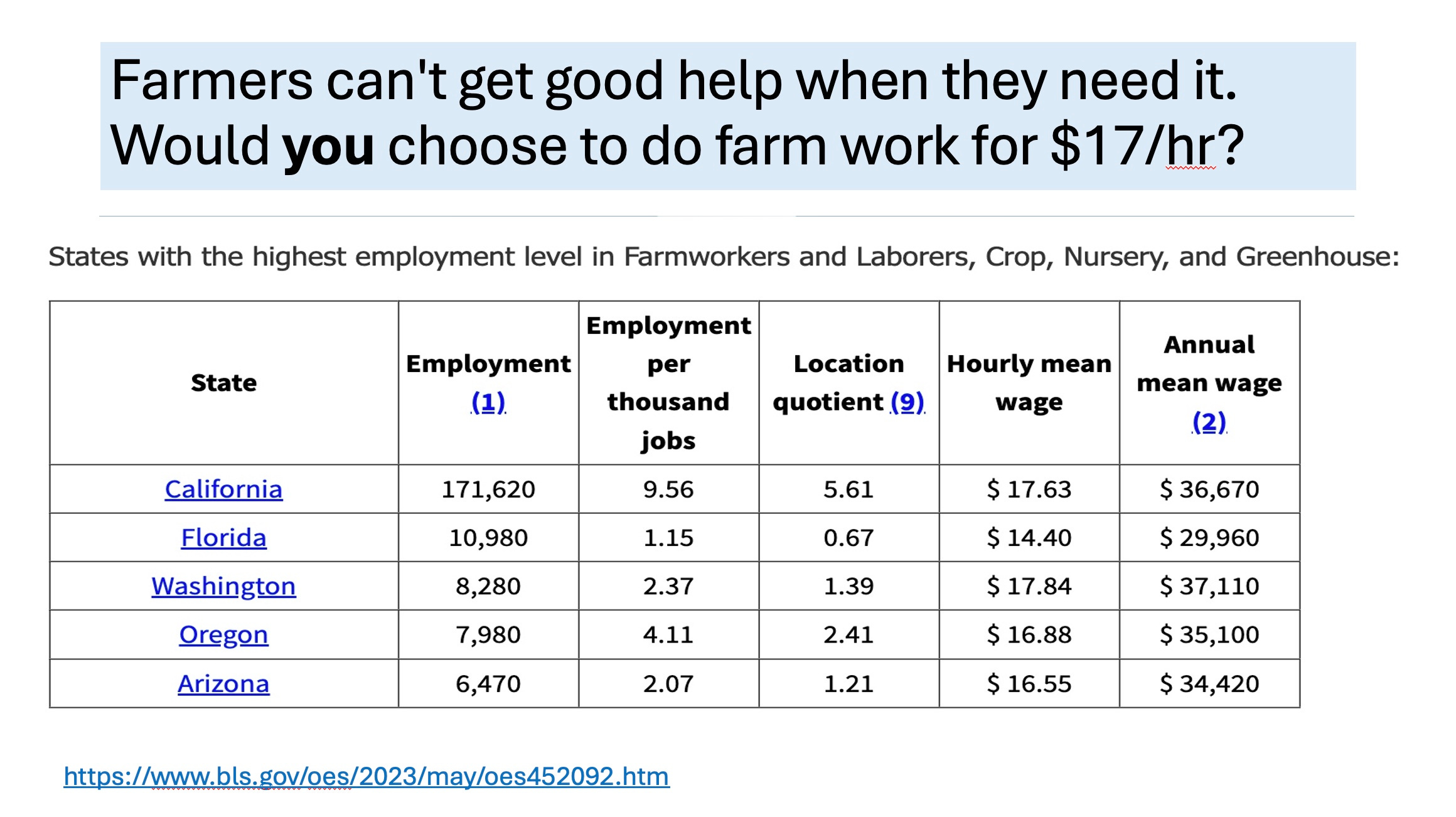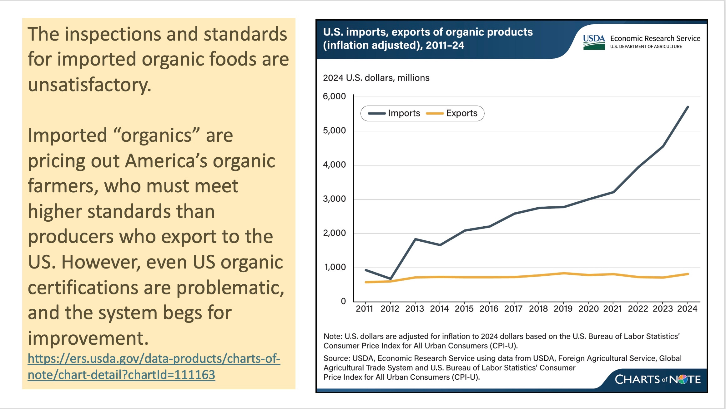 It is estimated that in 2025 the US will have a $50 billion dollar trade deficit for foods—in other words, we will import $50 billion more than we export in foodstuffs.