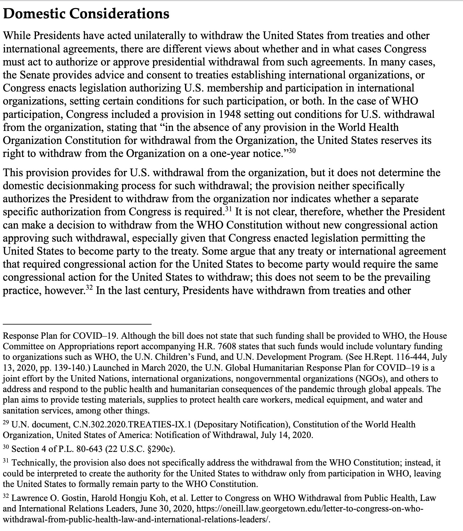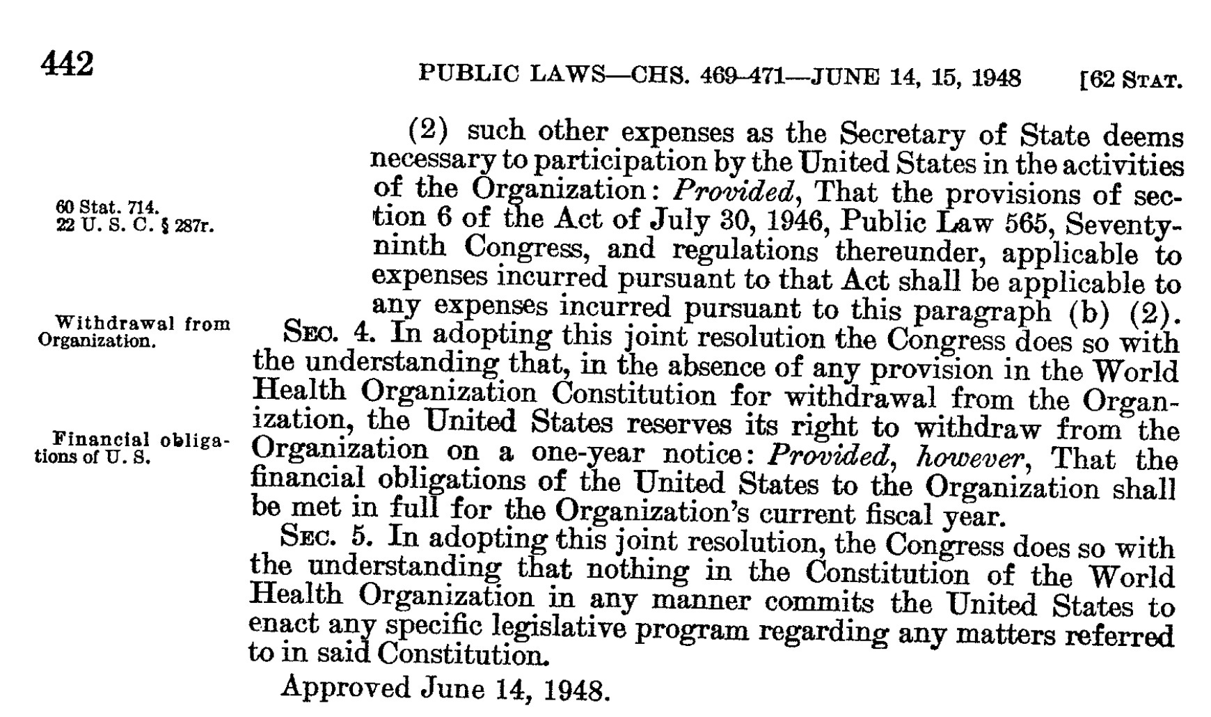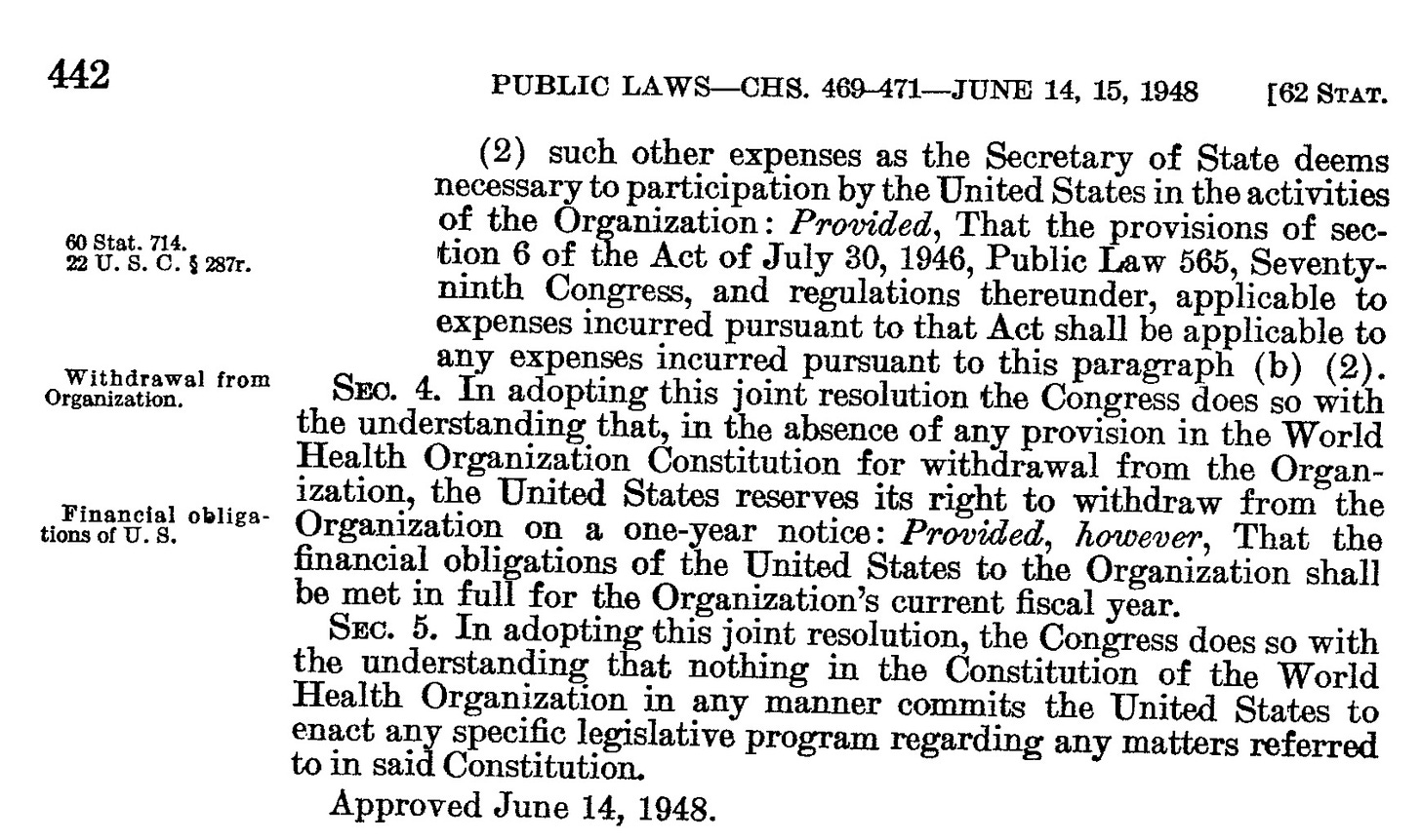 a) Using the reservation requires a year’s notice, which Trump already gave, and paying up our dues. Professor Boyle and I believe this would allow an immediate departure. This reservation language could be found on the State Department website, and I believe I have previously provided a link to it, but today it is difficult to find there, as the site is in flux. I could not find it on the WHO website either. But a wonderful colleague found it in the US Code: