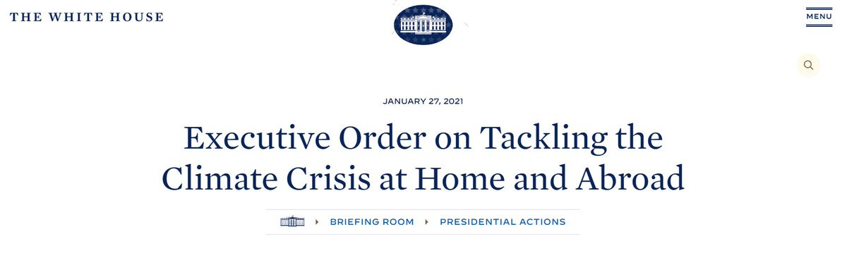 Executive Order 13990, Protecting Public Health and the Environment and Restoring Science to Tackle the Climate Crisis