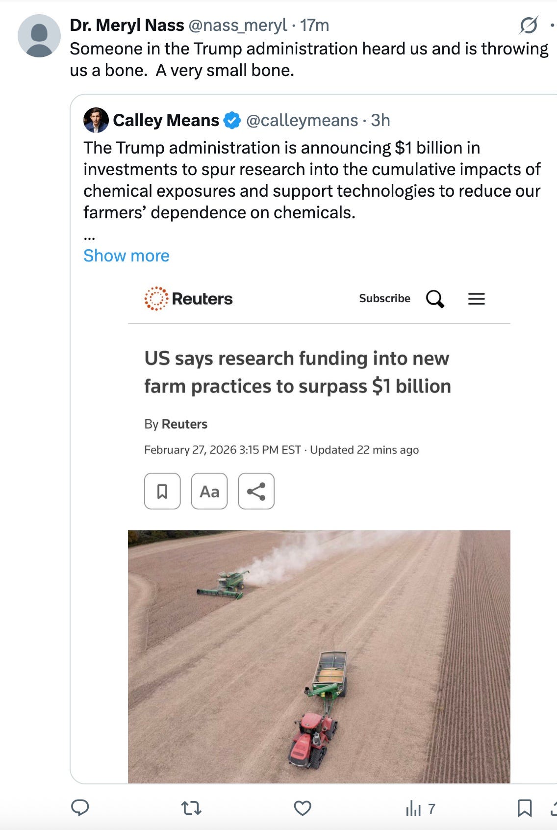 We do NOT NEED studies showing harm--we have enough of those, we know we are being poisoned. We need MONEY to transition to organic and regenerative farms NOW. WTF!!!!