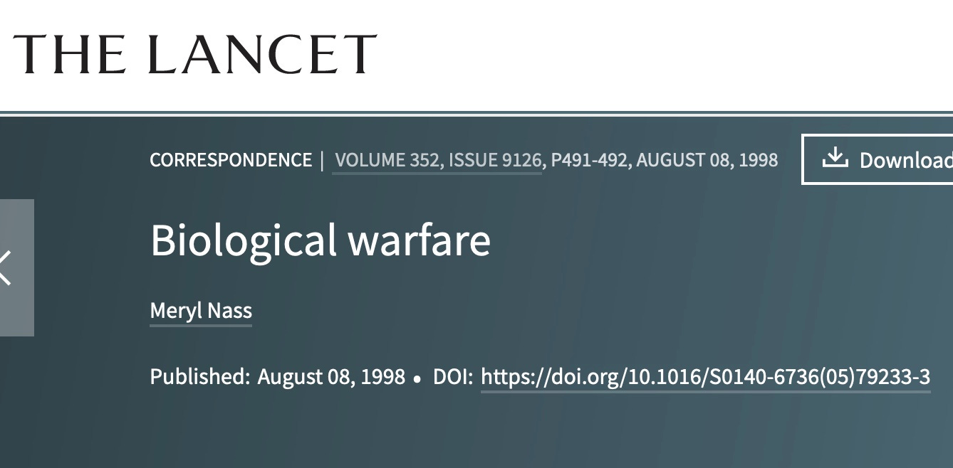 Richard Wise (May 9, p 1378) is wrong about secondary spread by anthrax in biological warfare. There is no person-to-person spread of anthrax: the only reported case of such spread was when a loofa was shared, in fact, this is one reason why anthrax is a classic choice for such warfare: it only affects the area in which it is used and does not spread back toward the perpertrator. Anthrax can however, mimic landmines, recurring unpredictably in the future from a soil reservoir
