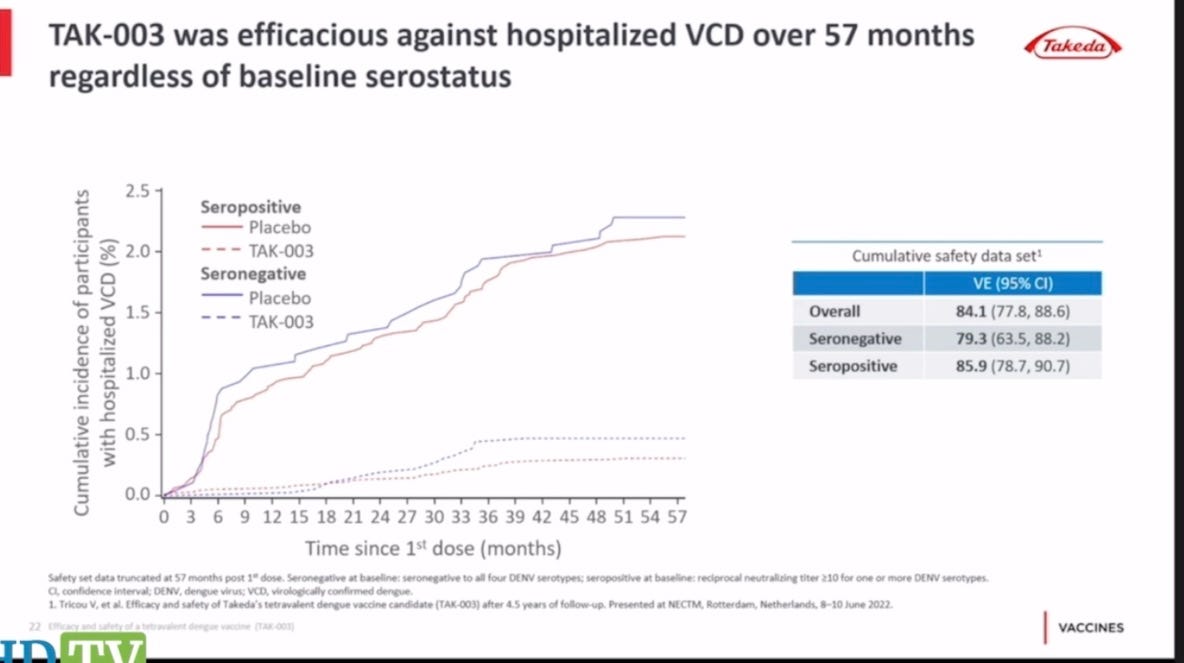 This new vaccine shows no evidence of benefit for the DEN4 serotype, and seems to enhance the DEN3 disease—just like COVID vaccines make you more susceptible to COVID after a few months go by.