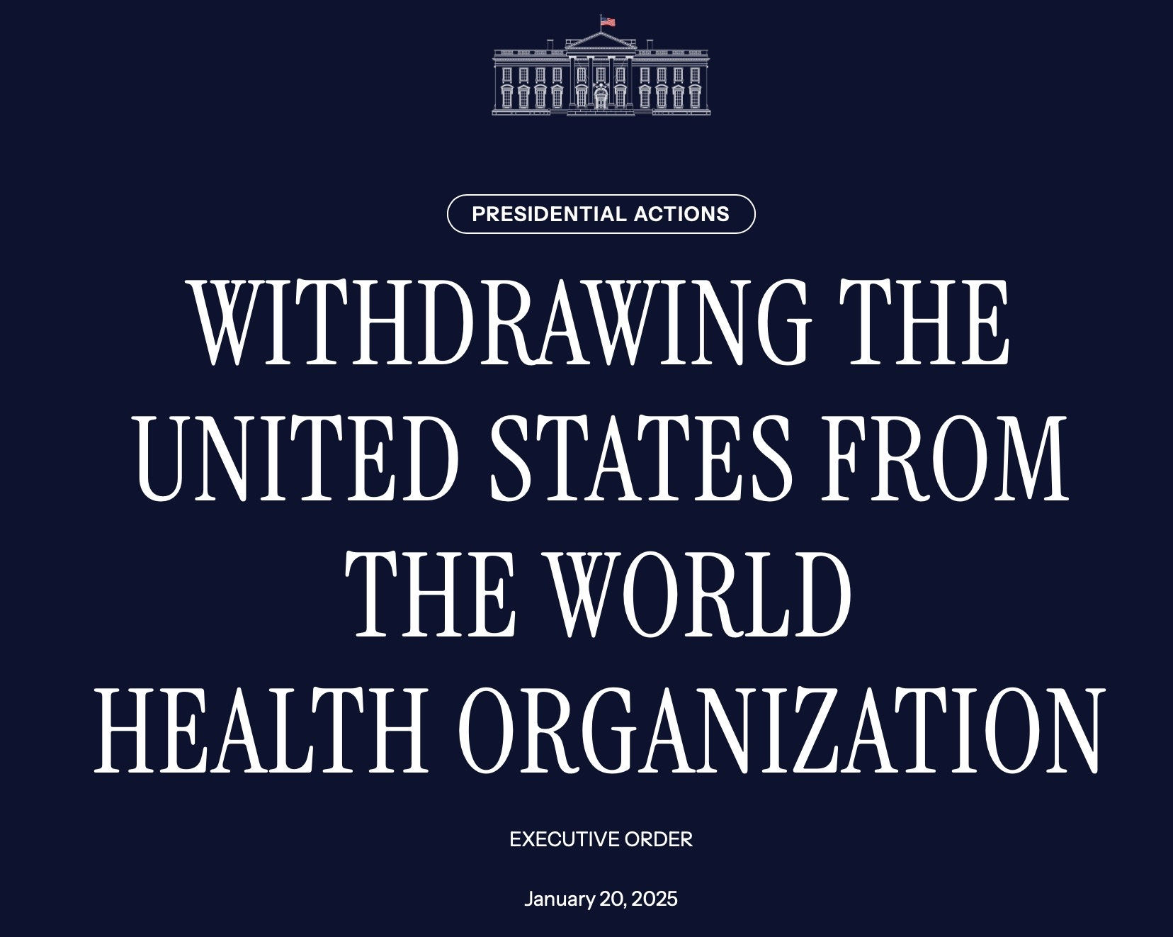Sec. 2. Actions. (a) The United States intends to withdraw from the WHO. The Presidential Letter to the Secretary-General of the United Nations signed on January 20, 2021, that retracted the United States’ July 6, 2020, notification of withdrawal is revoked.