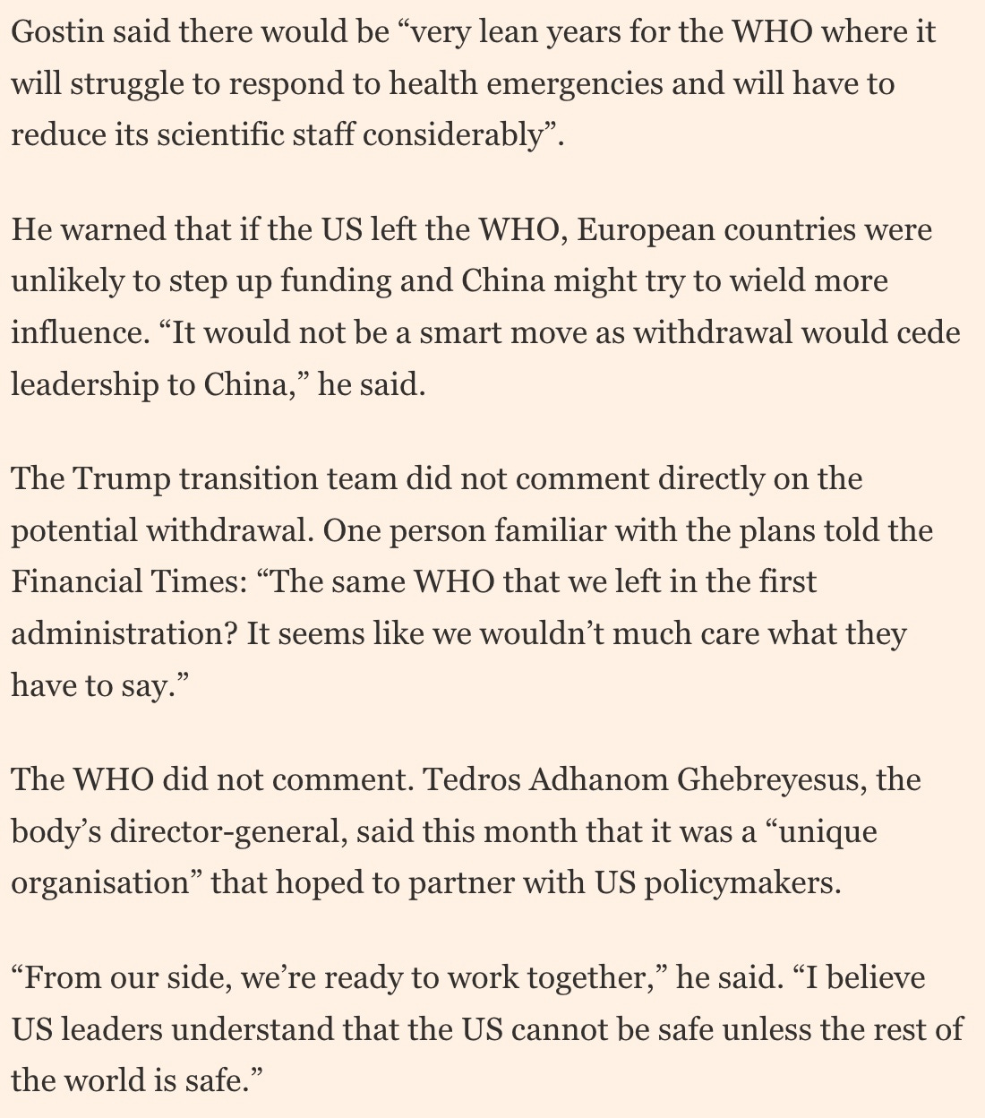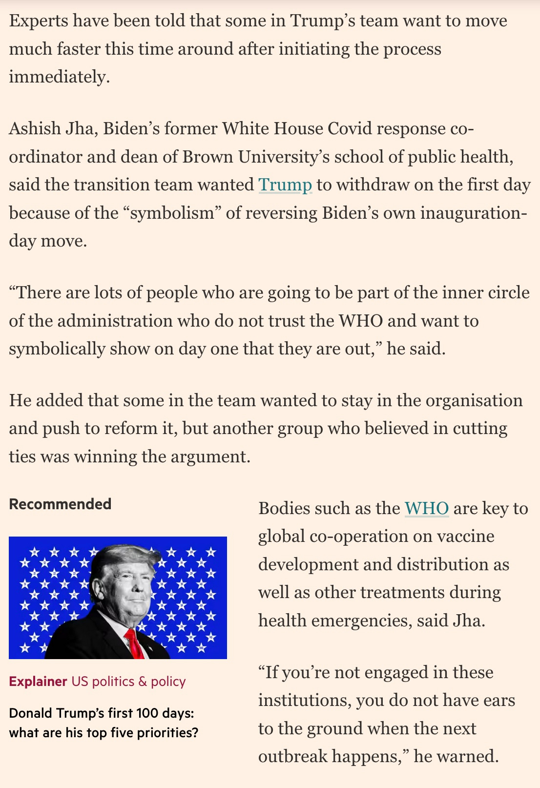 But who is the Financial Times talking to? Globalist attorney Lawrence O. Gostin and hapless former COVID czar Ashish Jha. Trump team is not being quoted.