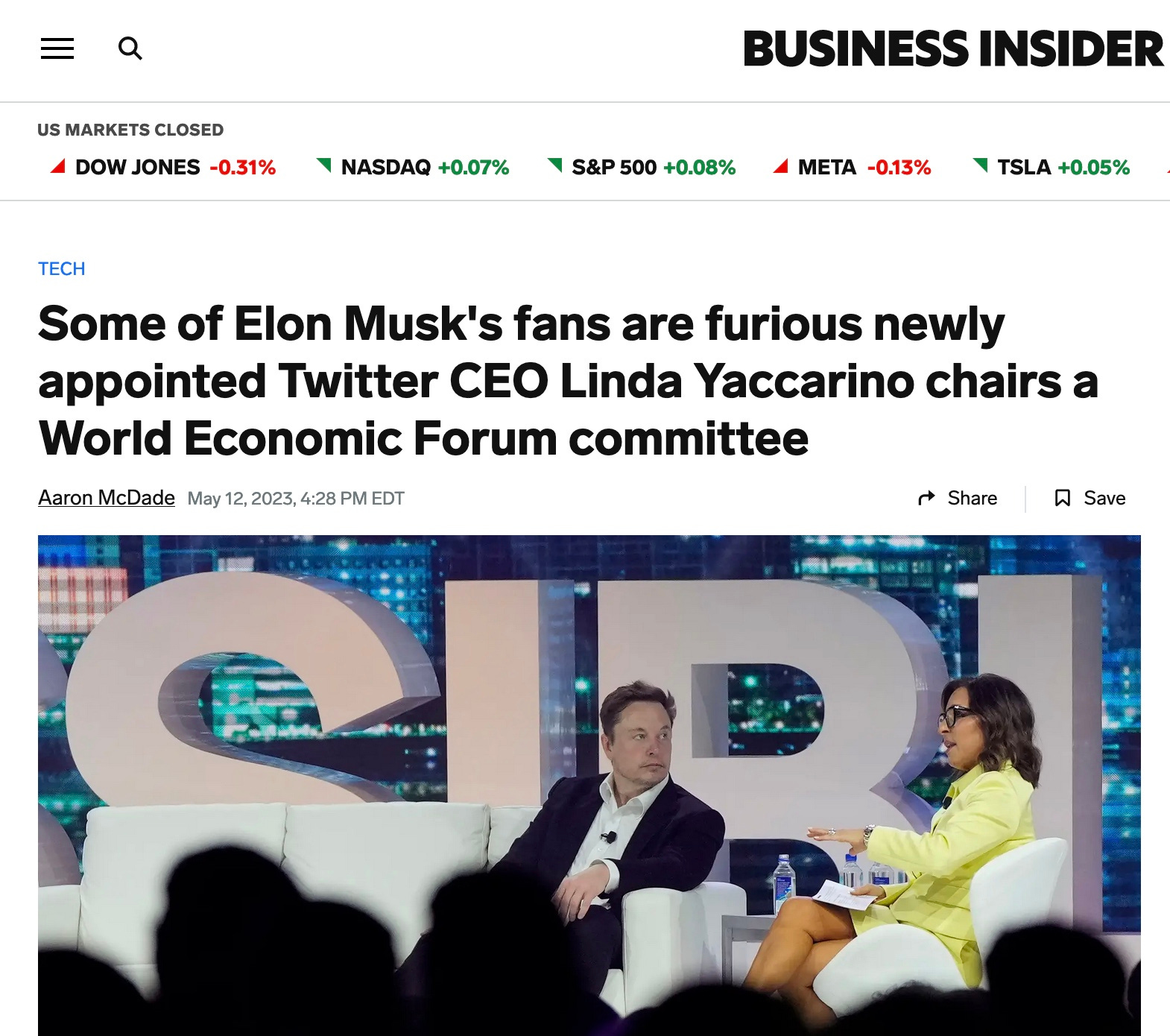 Yes ... when he hired her in spring '23 it became clear he isn't who one thinks as saviour of free speech. Many other tags to Elon revealing him as an insider of the cabal. There is no saviour. Unfortunately humans have been trained to look for one for thousands of years. Not happening.