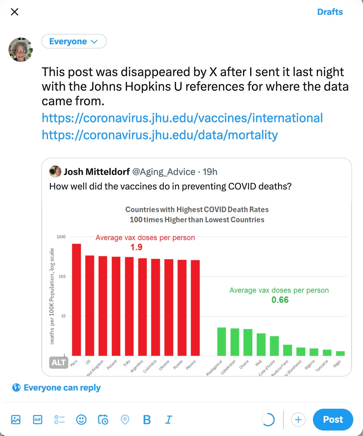 Twitter caused the post I sent out last night to disappear. And twitter sneakily tried to make me think it still existed