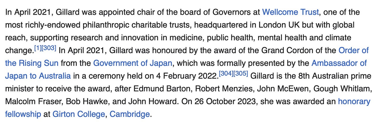 Now she is Chairman of the Board of the Wellcome Trust, Jeremy Farrar’s old haunt. She replaced the retired head of MI-5.