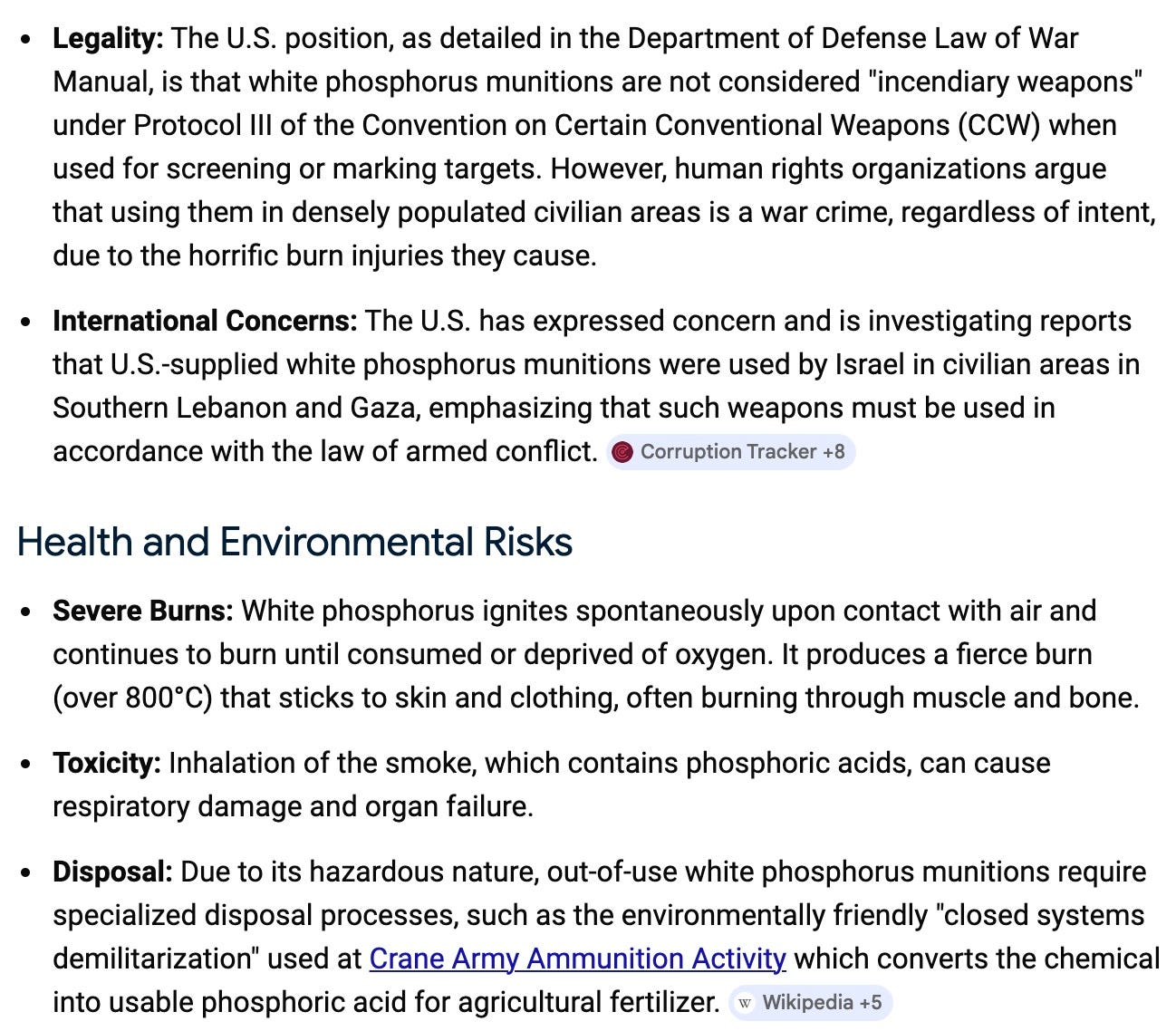 And why do we have white phosphorus weapons in our arsenal anyway? EDITED.