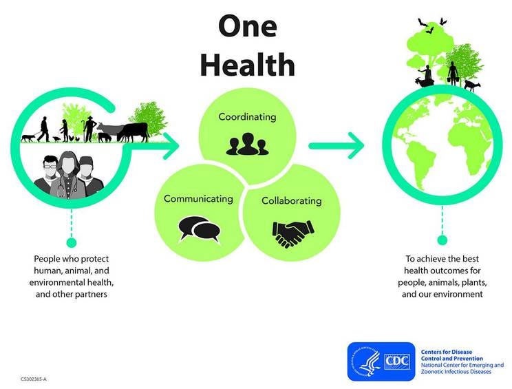 Most Americans bought into so many illogical ideas during COVID, like natural immunity didn’t exist, we had to be locked down until a magic vaccine could be injected—seems like it would be a cinch to get them believing in One Health.