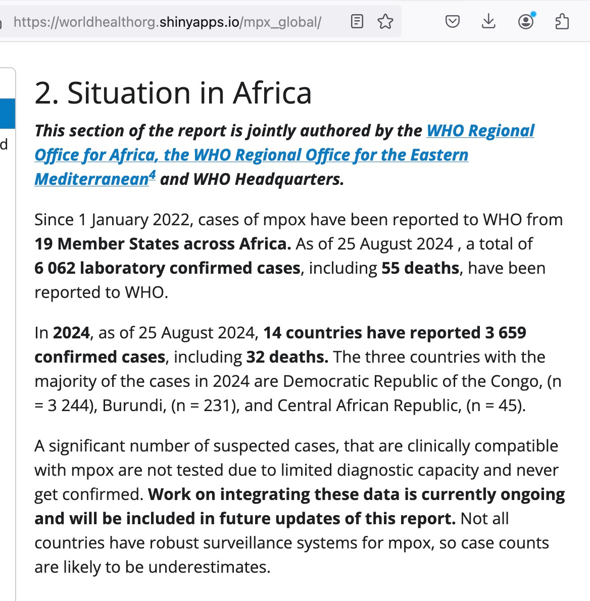 Recall that in the last two weeks numbers like >20,000 cases and over 500 deaths, mostly in children, were being bandied about when WHO declared this to be a Public Health Emergency of International Concern? Well, now you know the truth, as I suspected: there have been only 32 confirmed deaths in all of Africa. All year