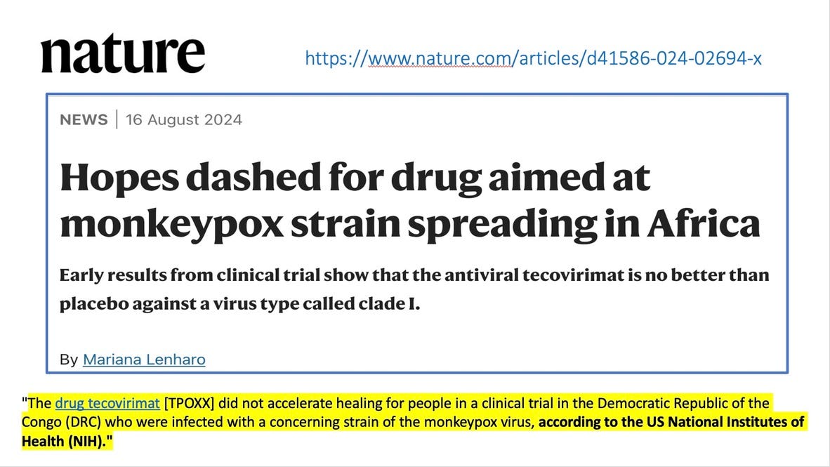 Stop the hoopla about a moneypox epidemic. Stop the myocarditis-inducing vaccines. If the WHO and great powers cared about Africans, they would provide all young children mosquito-proof bednets to impact the nearly 500,000 African children who die yearly from malaria. 500,000 children, not 32.
