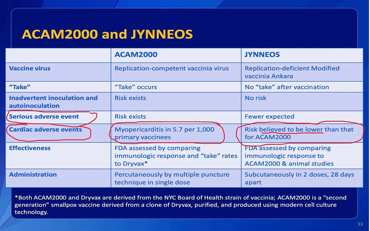 Below is a CDC slide on the two monkeypox vaccines from 2022 with my red marks—Nass