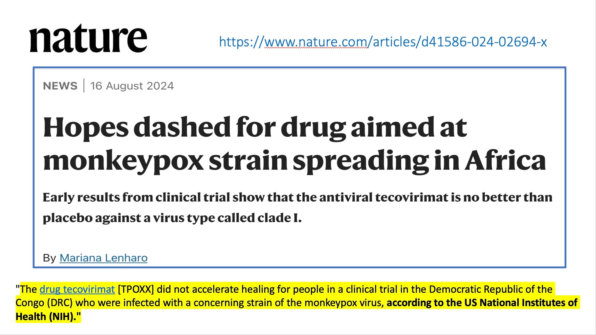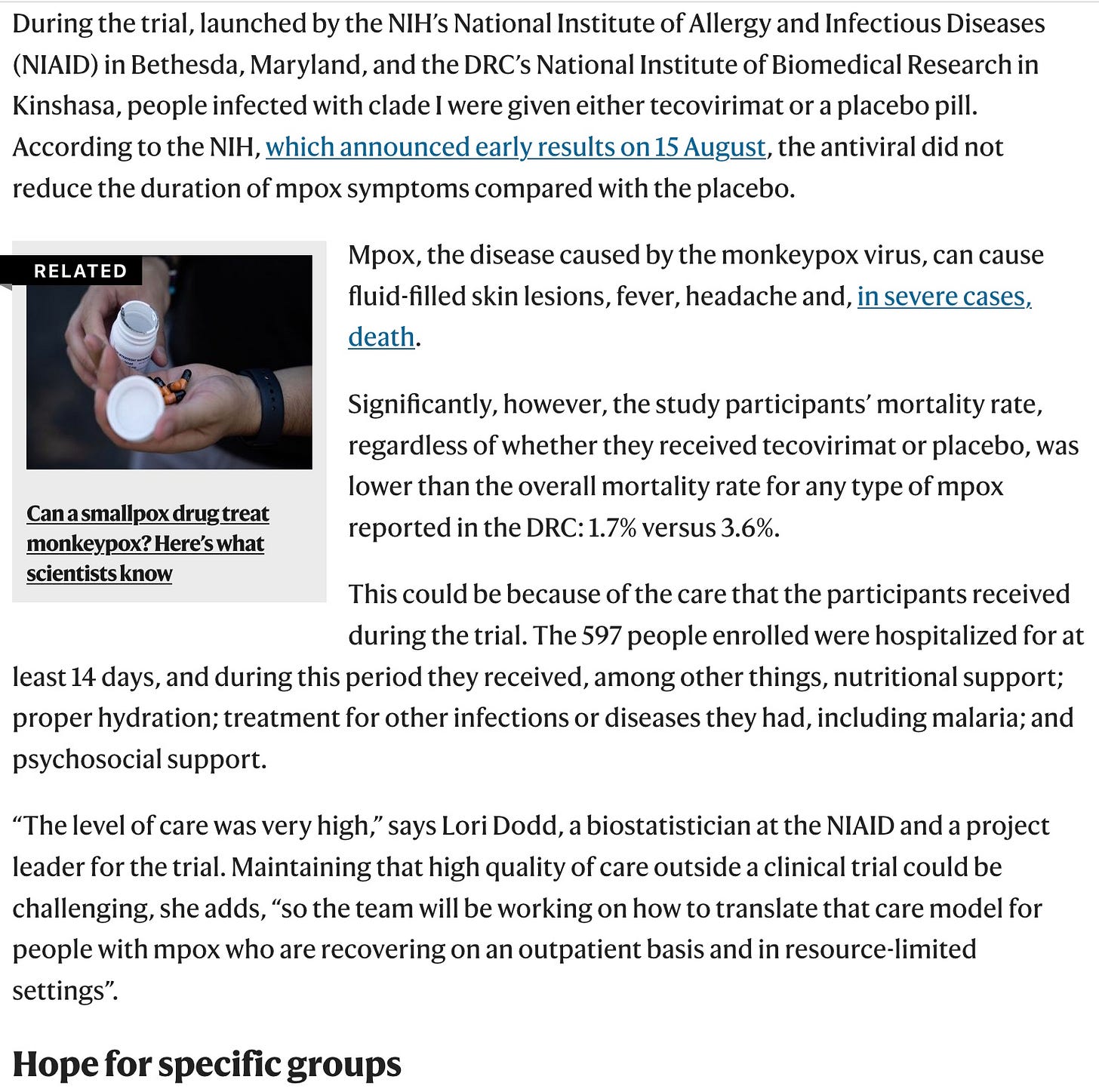 I told you, if you want to make up deaths, Congo is probably the easiest place in the world to get away with it. WHO is giving out TPOXX though NIH says it does not work against Congo's moneypox