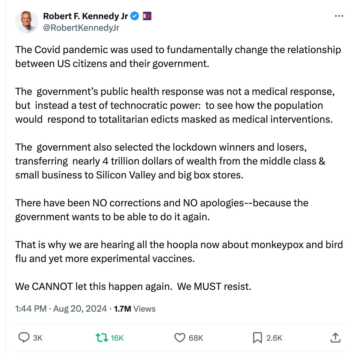 Will YOU let it happen again?Meryl NassAug 21, 202430110739Sharehttps://x.com/RobertKennedyJr/status/1825951970404045267PreviousNext