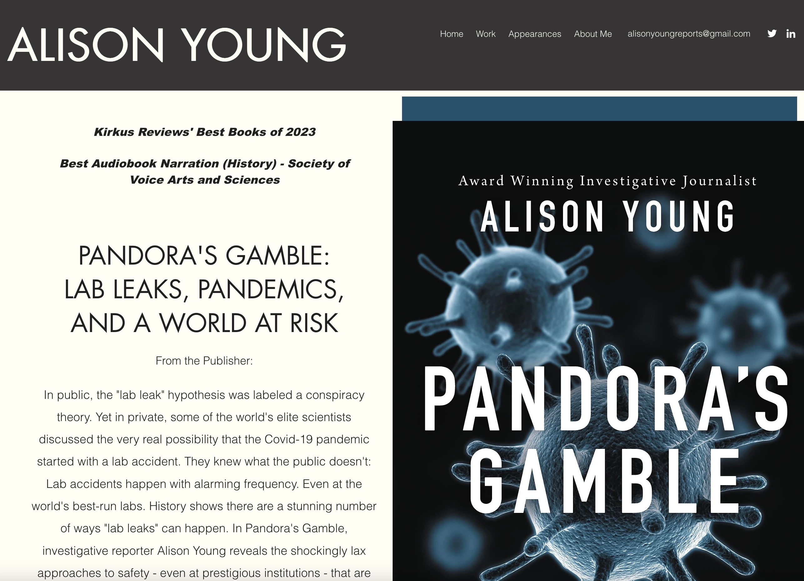 Alison Young is the former USA Today journalist who, ten years ago, investigated and wrote about lab accidents at virtually every US government lab working with so-called Select Agents and toxins, the name used in the US for microorganisms with pandemic potential or those that have other deadly features, or dangerous toxins derived from microorganisms.