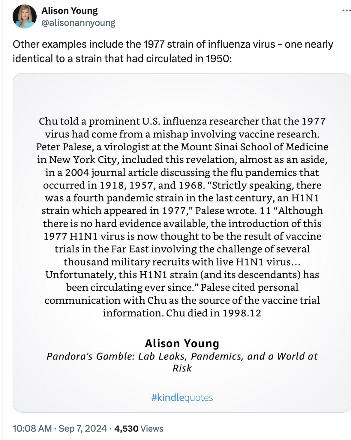 So yes, the world experienced an influenza pandemic in 1977 due to a lab escape.